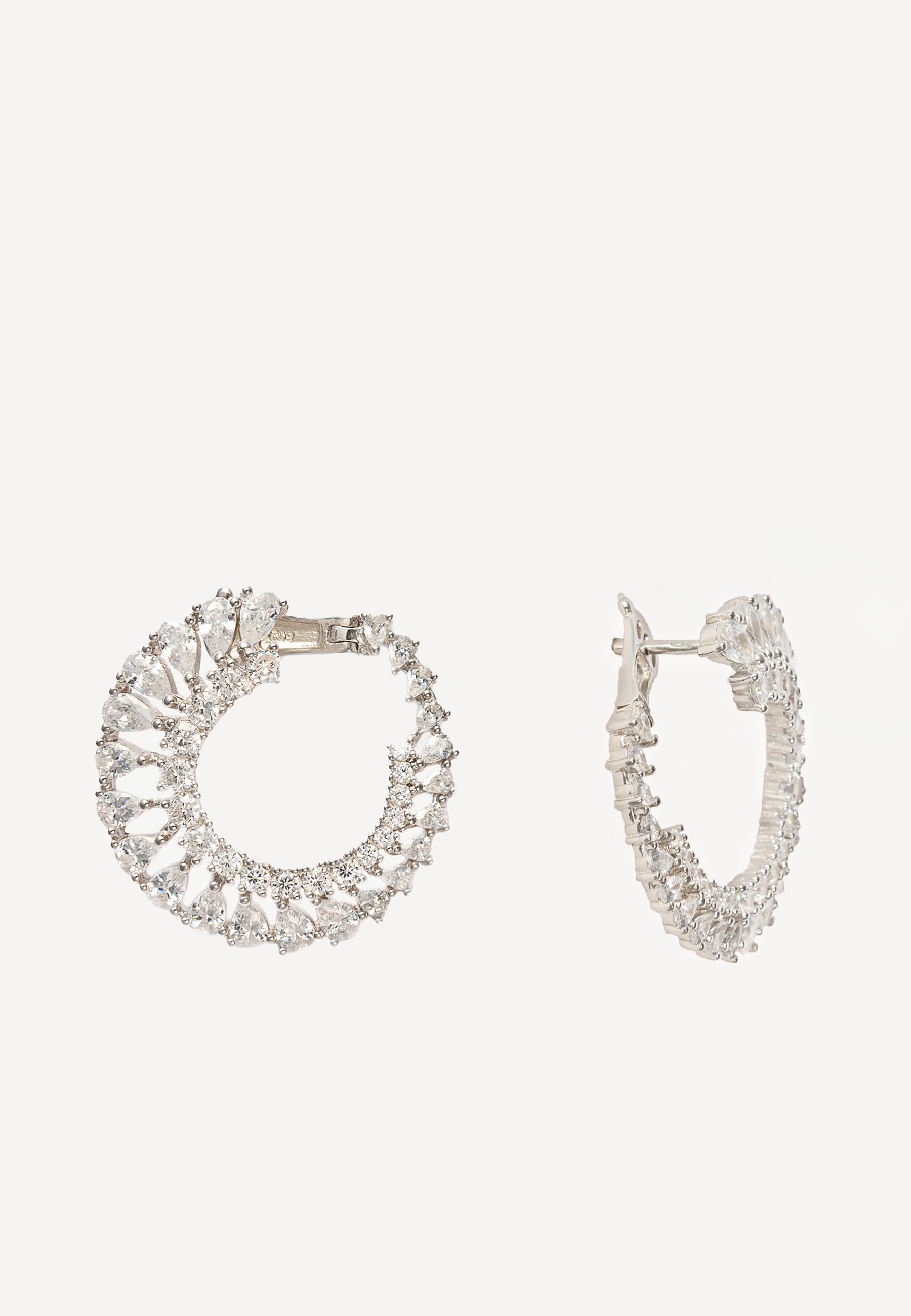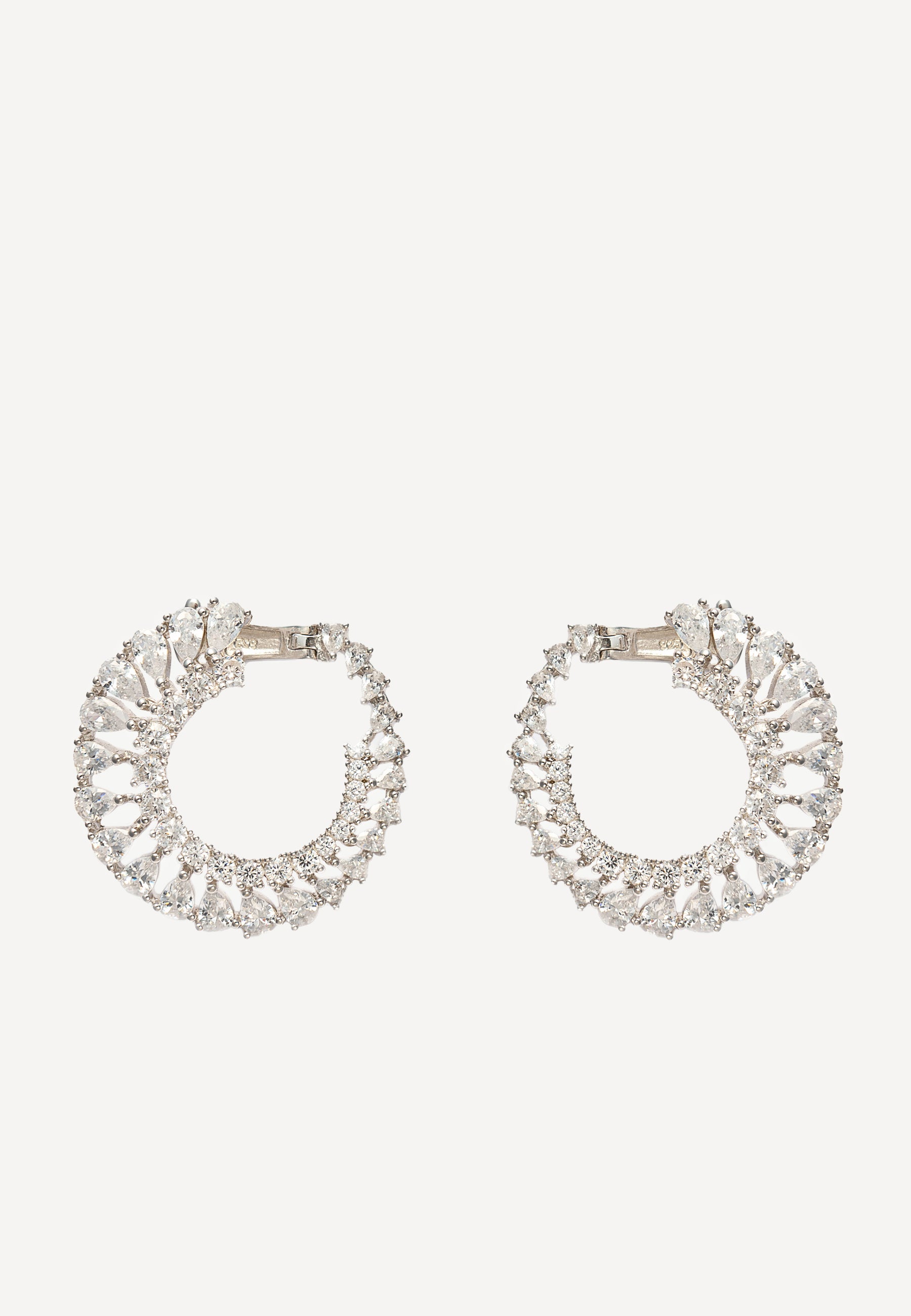 Luminous zircon-embellished hoops with secure creole fastening deliver understated sophistication. These refined earrings combine meticulous detailing with timeless design, perfect for discerning jewelry enthusiasts seeking elegant everyday luxury.