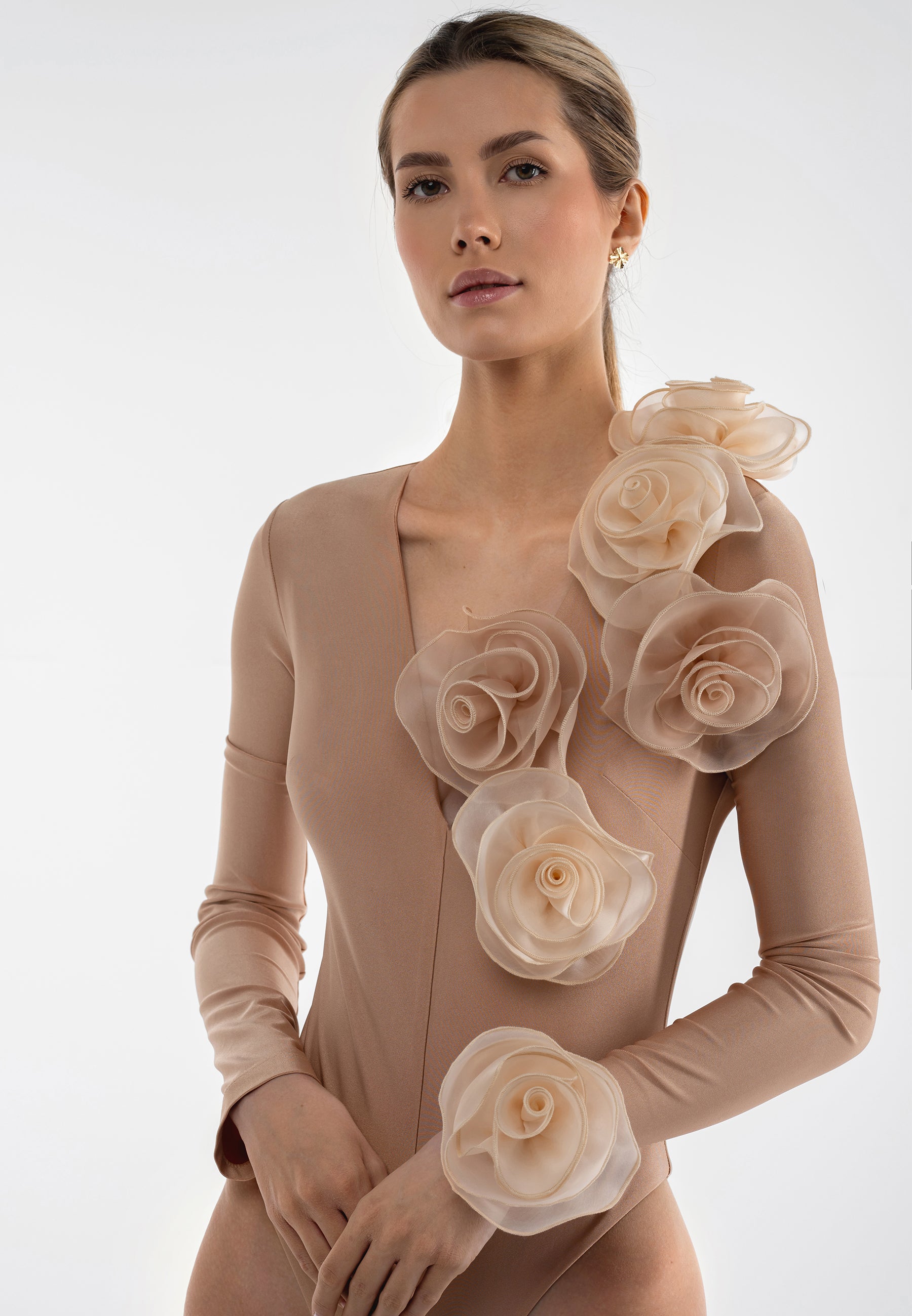 This rose-shaped brooch, crafted from luxurious silk organza, adds refined elegance to any coat or blouse. Featuring a secure pin, it offers versatile styling with timeless charm.