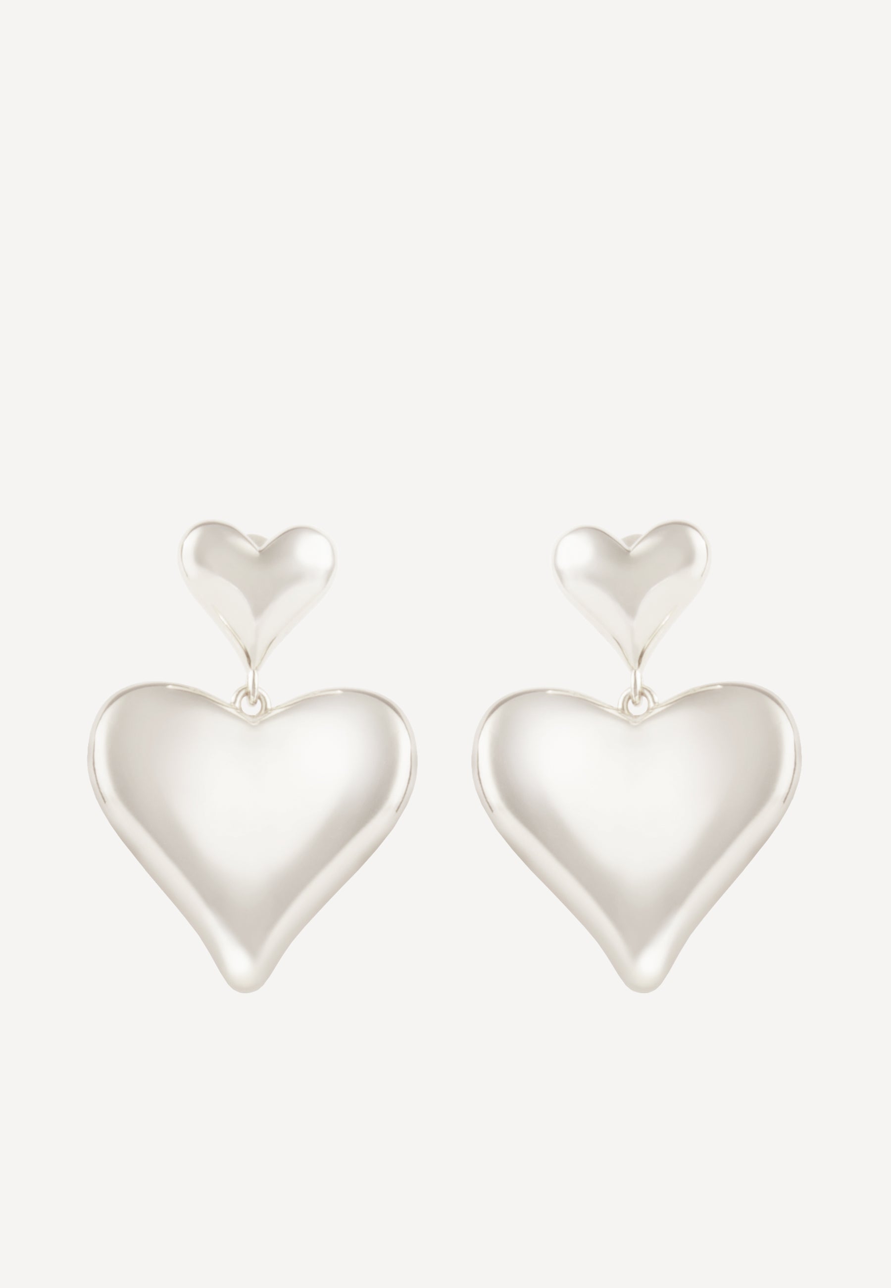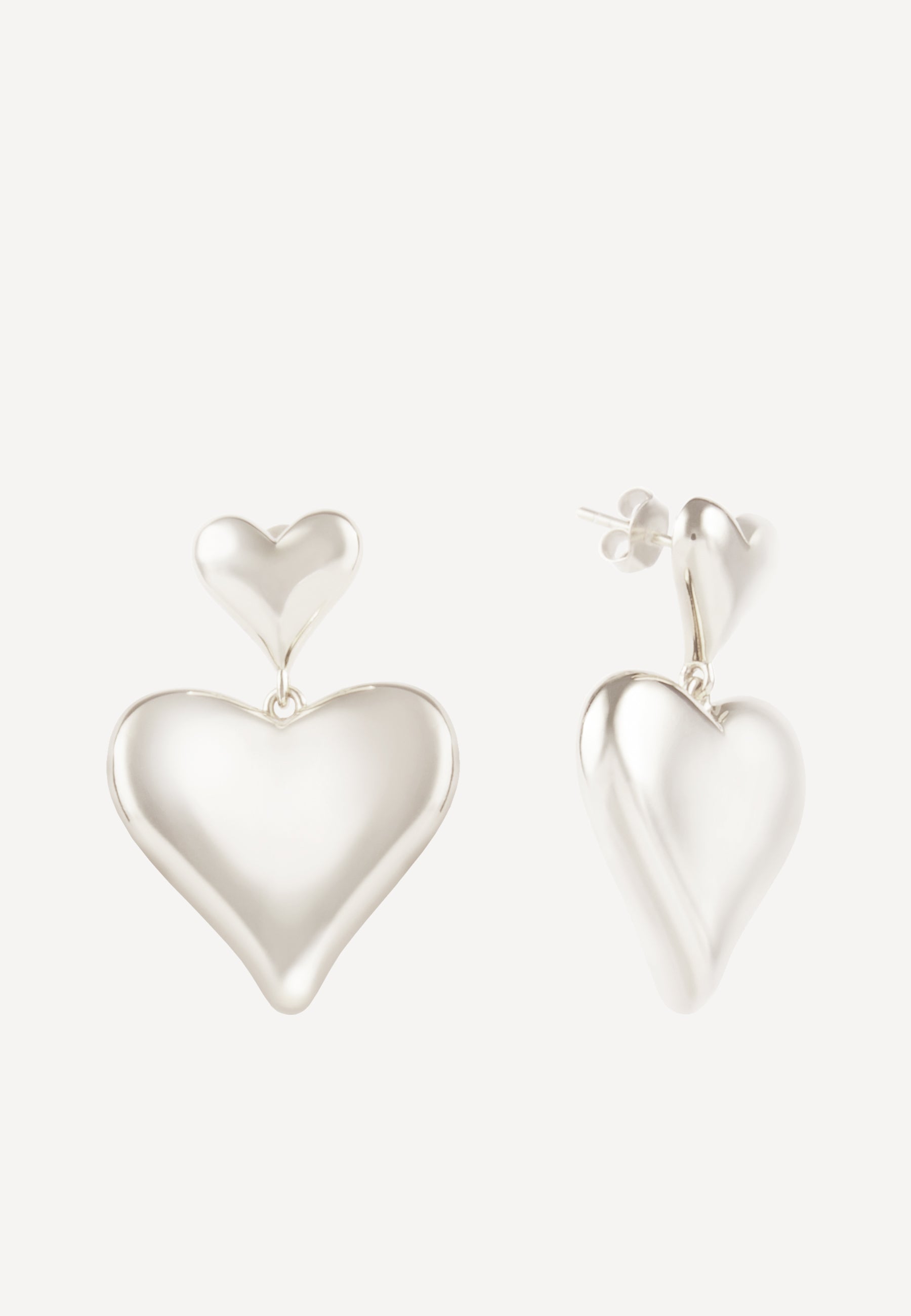 Striking double-heart earrings crafted from sterling silver and finished with a luxurious rhodium plating. The sculptural heart shape catches the light beautifully, creating a soft, warm glow against the skin.